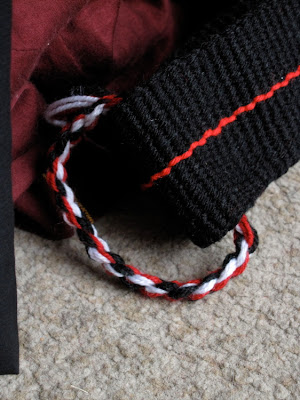 The fiber in the white and red skeins, C, is sheep's wool from Saudi. I assume the black is also sheep's wool, and I'm thinking the grey might have some goat in it, but I'm not sure. Need to pry a bit more, with Arabic-speaking friends.